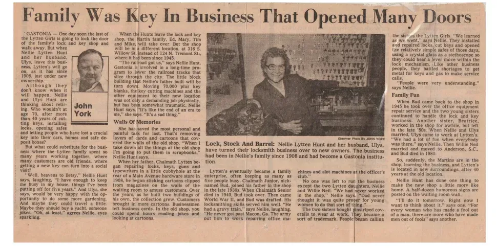 Since 1908, Lytten Locksmith Inc. has built a legacy of trust in the locksmith industry. As a family-run business based in Gastonia, NC, we have served the Gaston and surrounding counties with unwavering dedication and skill. Our century-long journey is a celebration of traditional craftsmanship merged with modern security solutions.